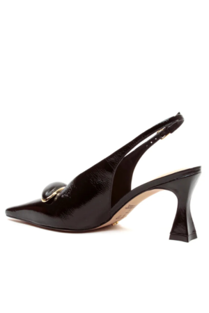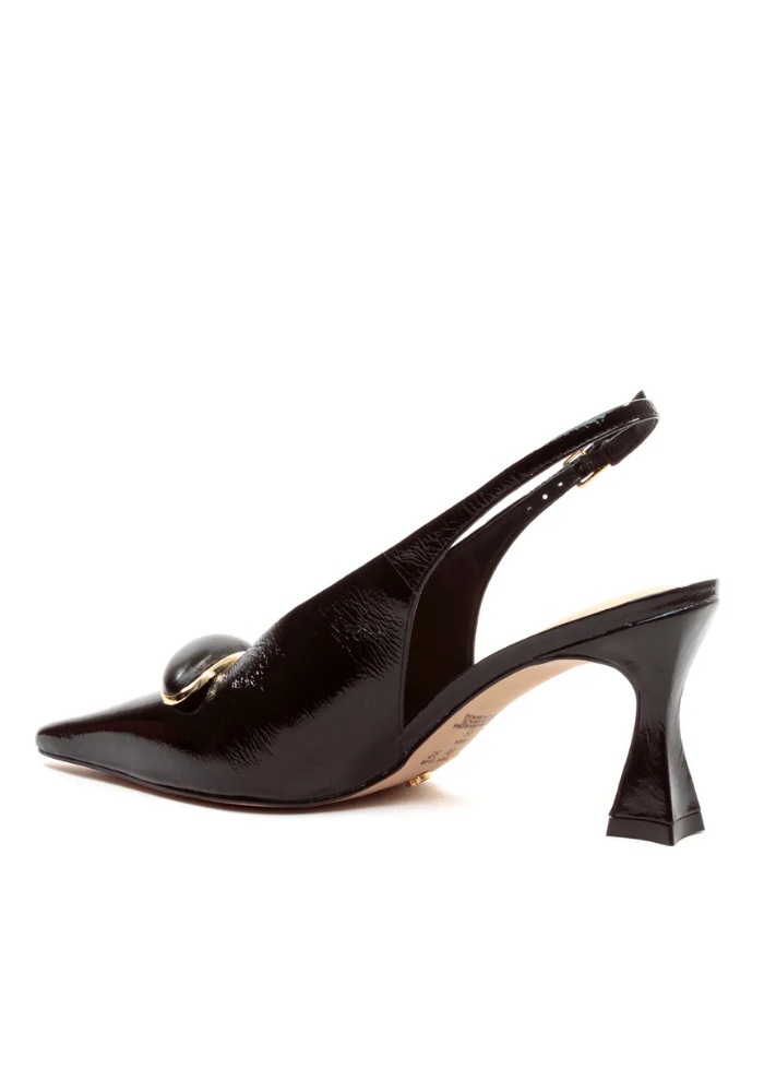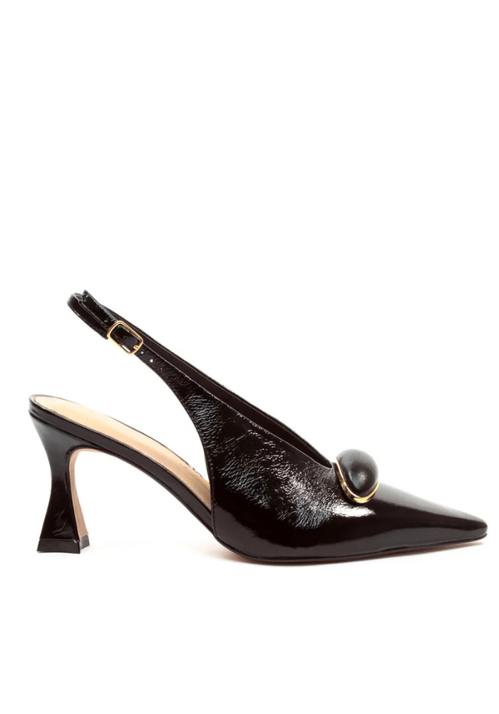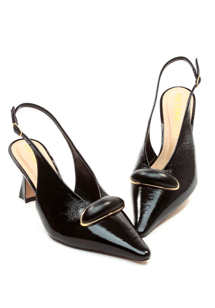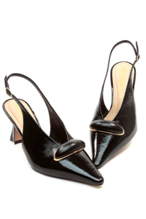 Slingback Couro Preto Salto Médio
